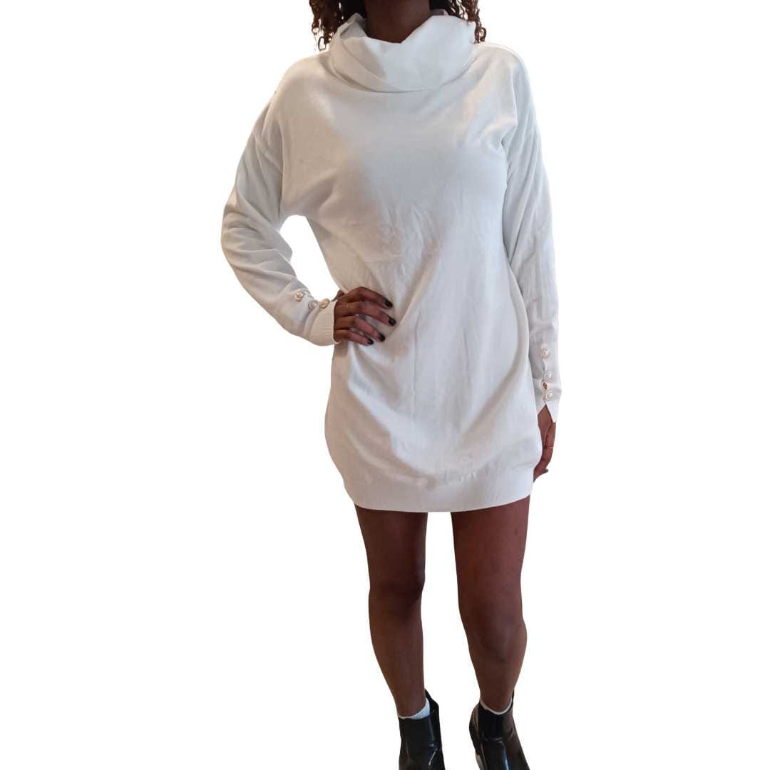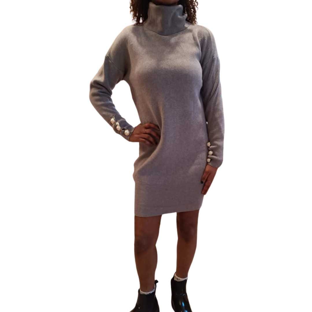 Elegante e versatile, questo abito da donna è caratterizzato da bottoni decorativi sulle maniche, un dettaglio raffinato che aggiunge stile a qualsiasi outfit. Perfetto per il lavoro, le occasioni speciali o un look casual-chic.