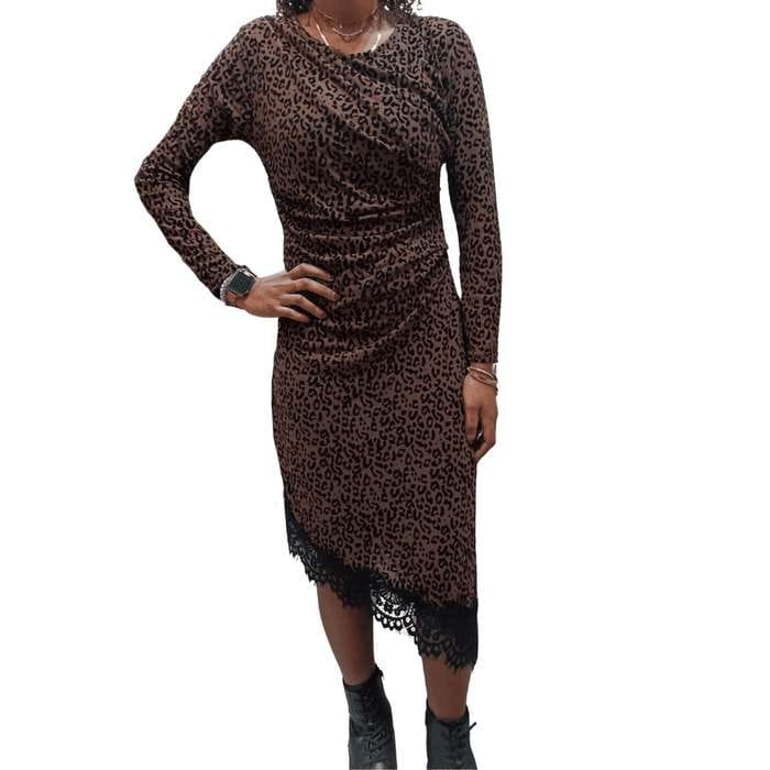 Abito leopardato donna con inserti in pizzo