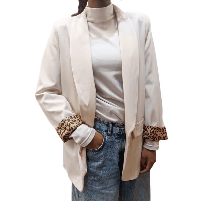 Risvolti sulle maniche con fantasia leopardata