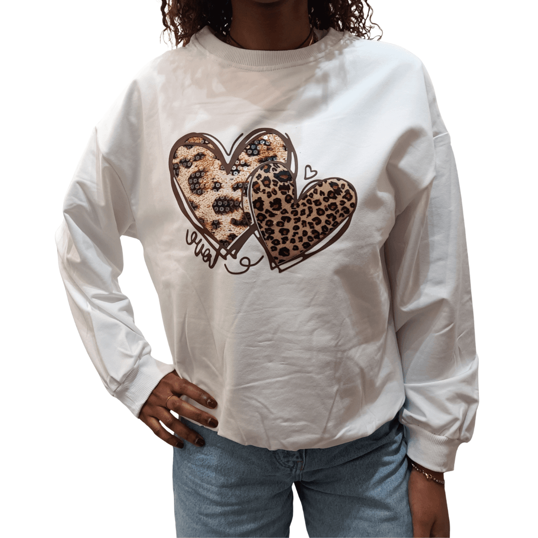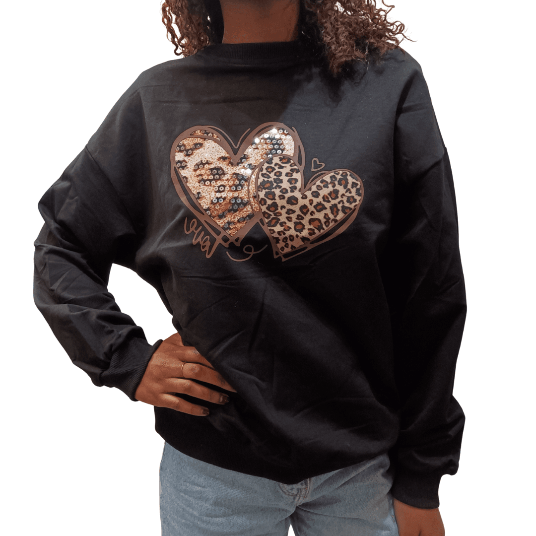 Felpa Cotone con cuore leopardato