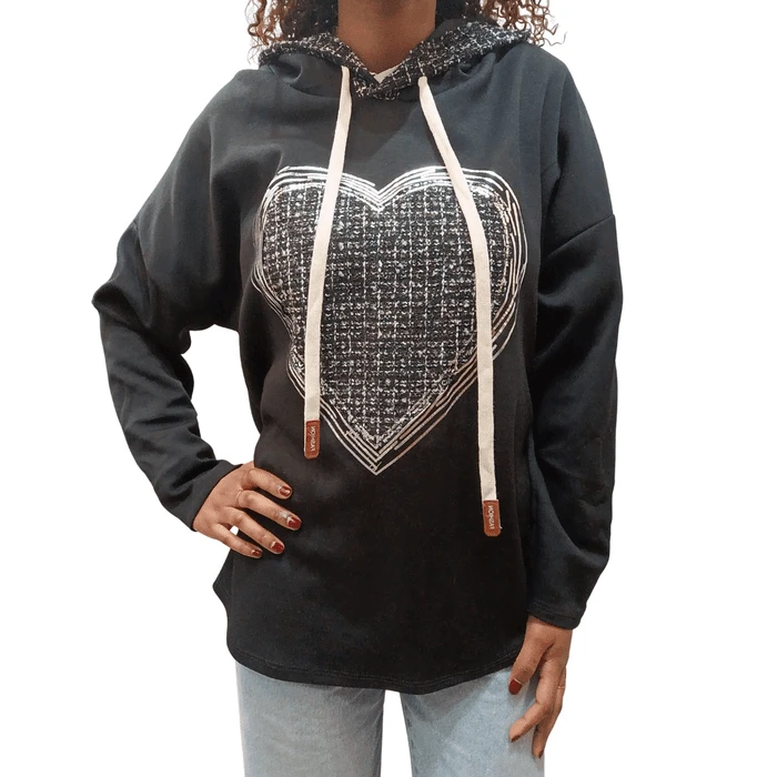 Felpa con cappuccio e decorata con un cuore.