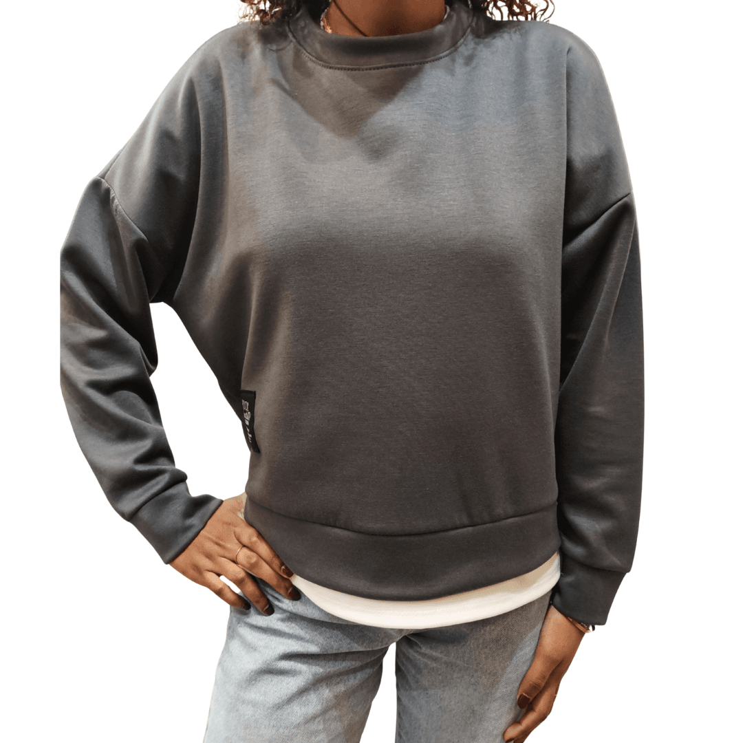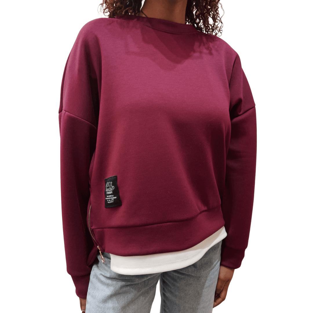 Felpa girocollo 100% natural. Presenti due piccole zip laterali