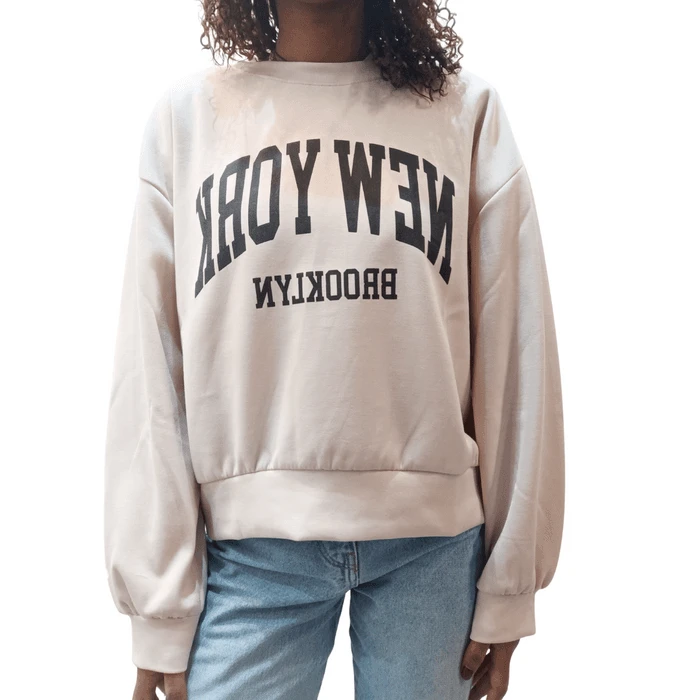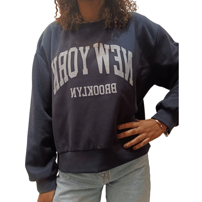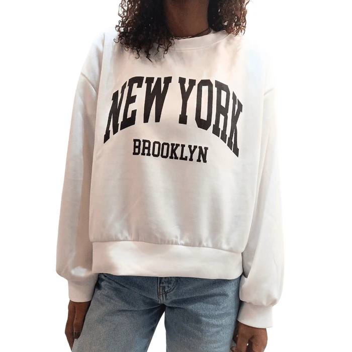 Aggiungi un tocco urbano al tuo guardaroba con la nostra felpa girocollo New York.