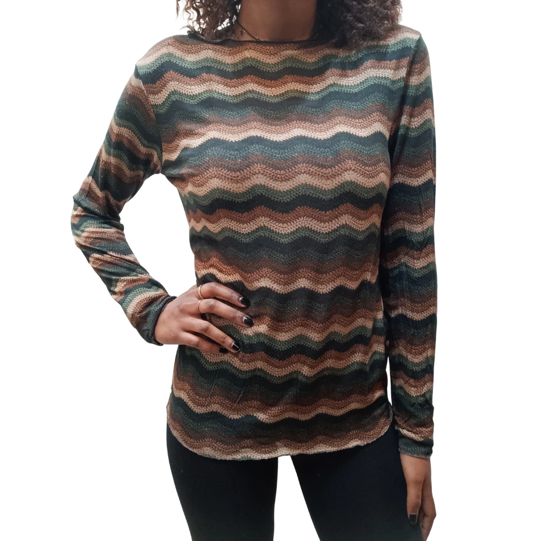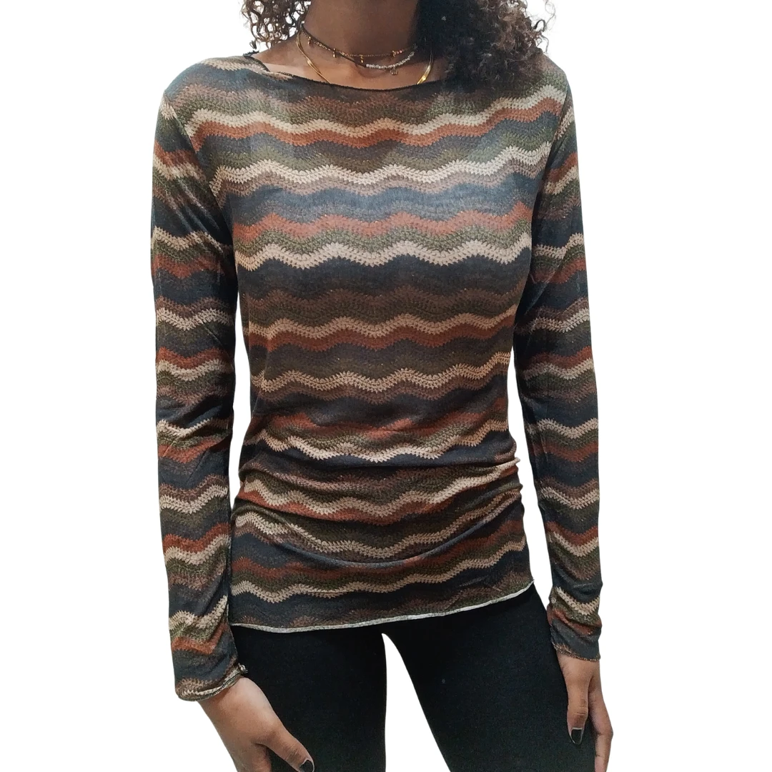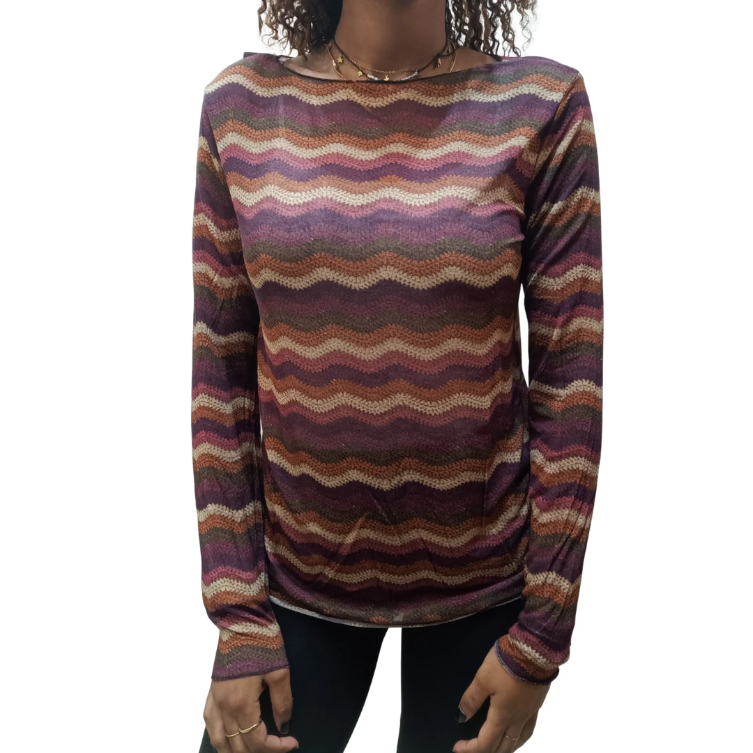 T-shirt a manica lunga con scollo a barchetta con fantasia missoni.