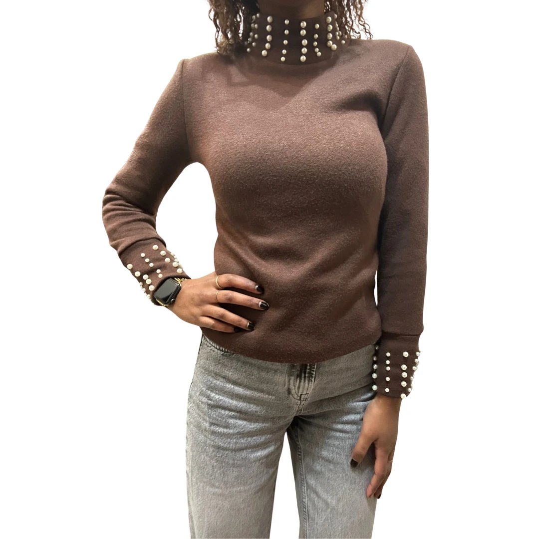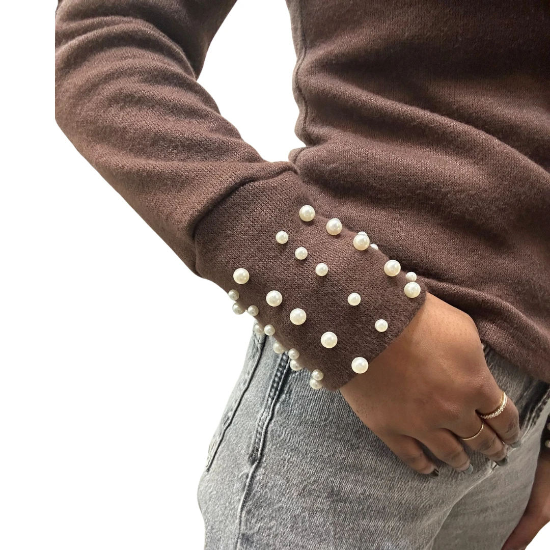 Dettagli perle sulle maniche e sul collo