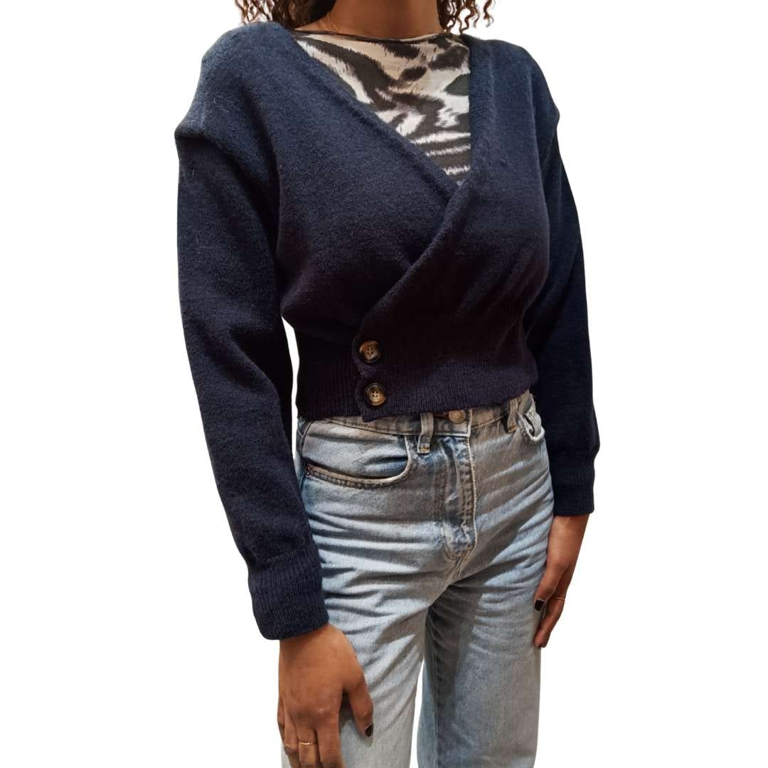 Maglia da donna a incrocio corto con bottoni laterali, dal design femminile e moderno. La taglia unica, con vestibilità dalla 40 alla 44, valorizza la silhouette grazie al taglio incrociato che mette in risalto il punto vita senza rinunciare al comfort.